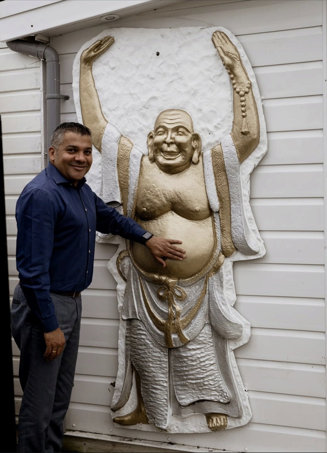 For many years, the statue stood at the entrance of the former Laughing Buddha Chinese Restaurant, becoming a familiar and cherished symbol of joy. When we later took over the site, owner Yadav reloaded it to his own garden where it was lovingly preserved.